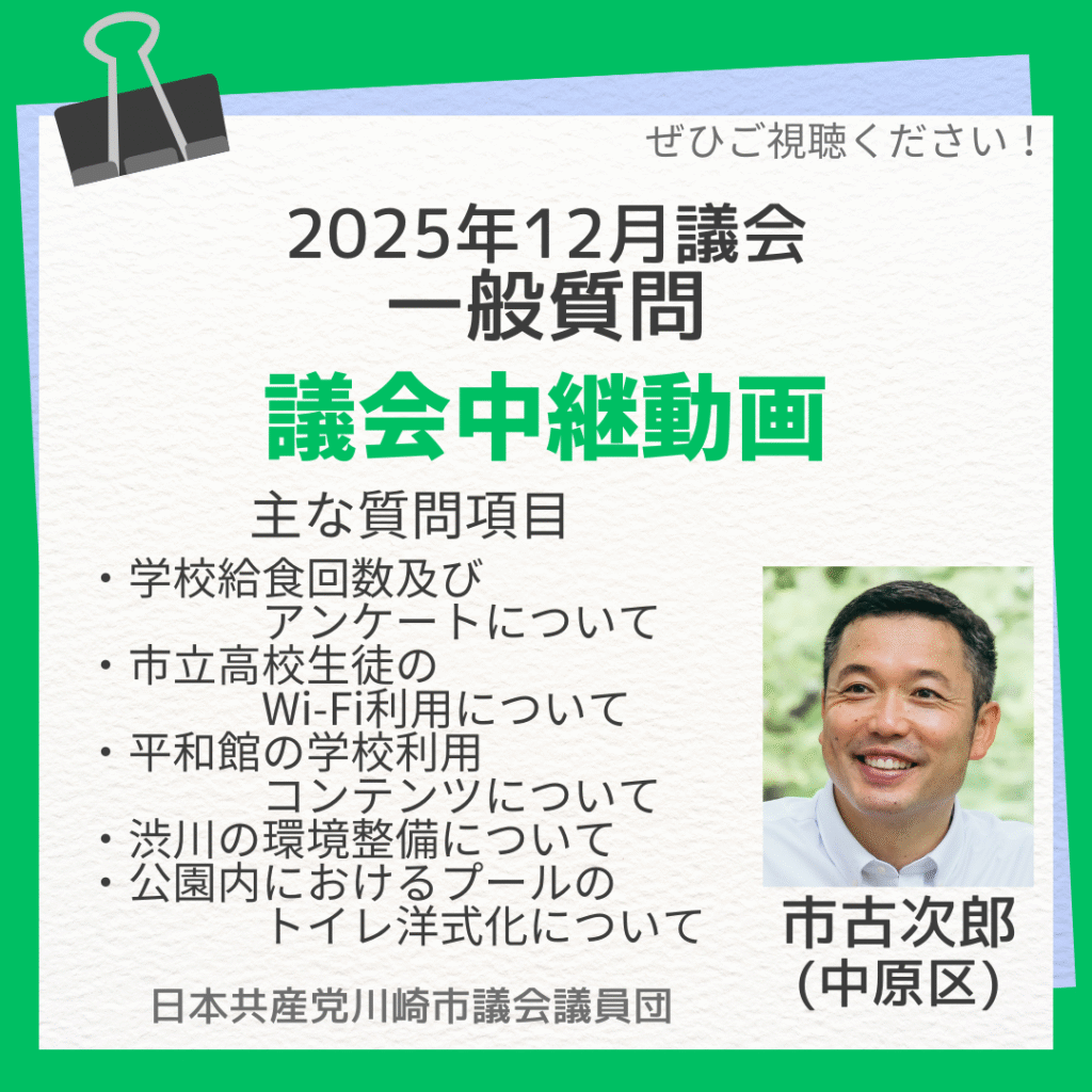 2025年12月18日の川崎市議会定例会で、市古次郎議員が一般質問を行いました。主な内容は以下の通りです。